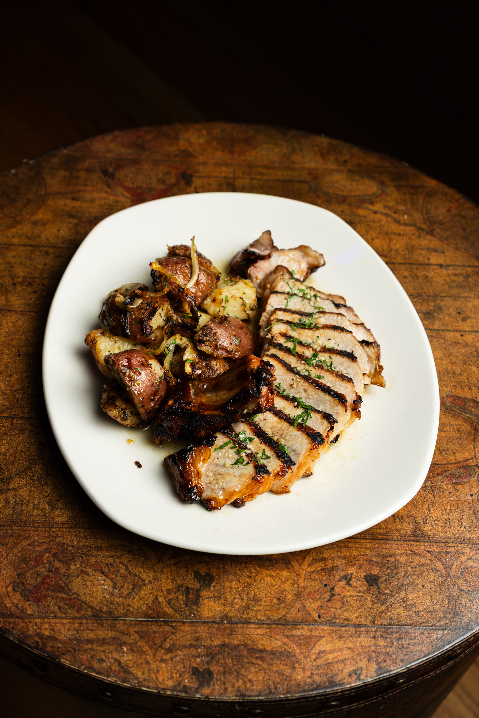 Tender skirt steak, marinated and grilled, served with sautéed spinach and roasted potatoes. (Premium option – included in Platinum package)