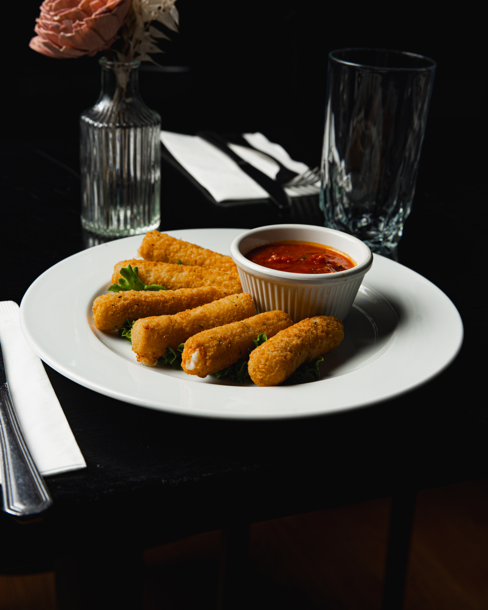 Handcrafted mozzarella sticks fried to golden perfection, served with house marinara.